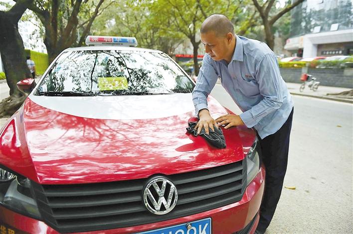 雖然第二天就要把車交出去,陽愛華還是把他的“老伙計(jì)”擦得干干凈凈。本版攝影:深圳商報(bào)記者 廖萬育