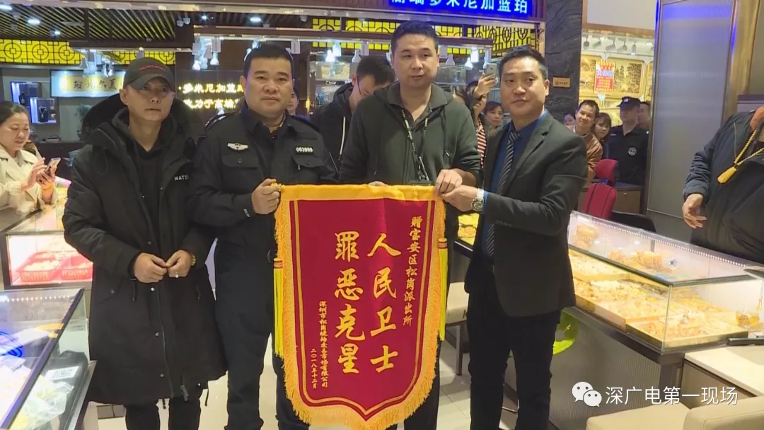 琥珀被盜后的第十天,松崗派出所民警在湖南將嫌疑人沒(méi)來(lái)得及出手的琥珀全部追回。11日上午,松崗派出所民警來(lái)到松崗琥珀交易市場(chǎng),把被盜的琥珀歸還給事主寇先生。寇先生與琥珀交易市場(chǎng)給派出所民警送上錦旗表示感謝。