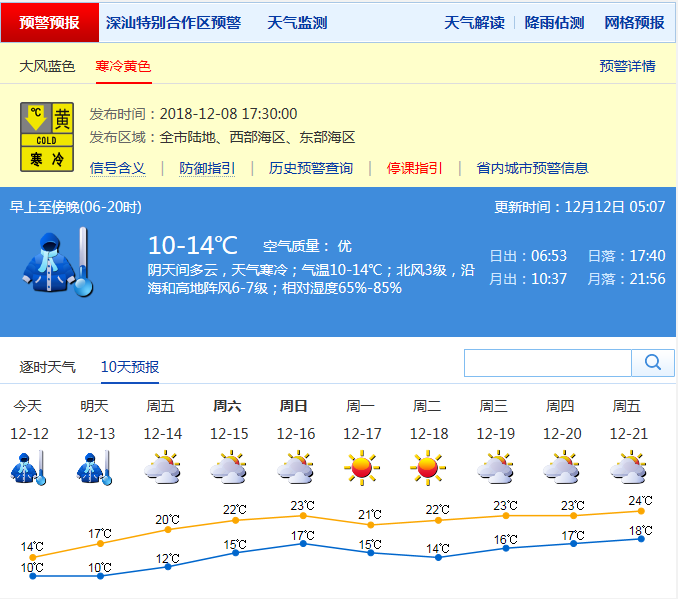市氣象局發(fā)布未來十天天氣預報(數(shù)據(jù)更新于12月12日5時7分)