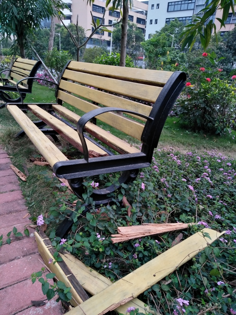 民治逸秀公園內(nèi)的休閑凳也得治!才開園3個月,休閑凳就變成了這樣↓↓