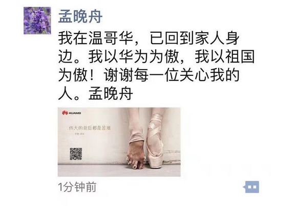 12月12日下午,孟晚舟保釋后首次發(fā)聲:為華為驕傲,為祖國驕傲
