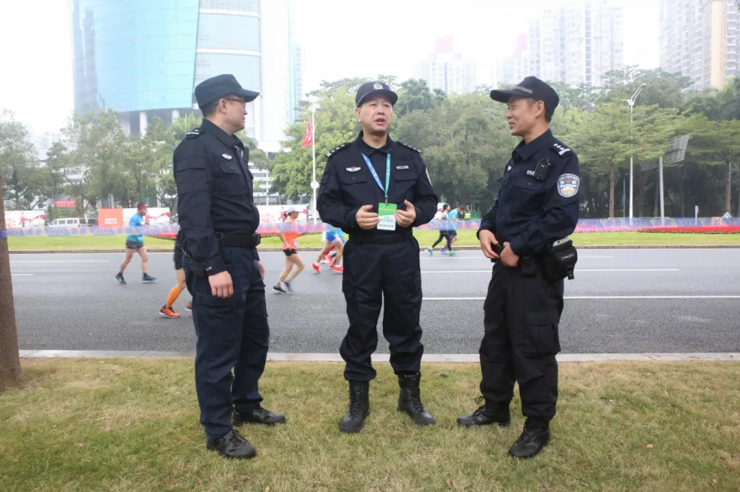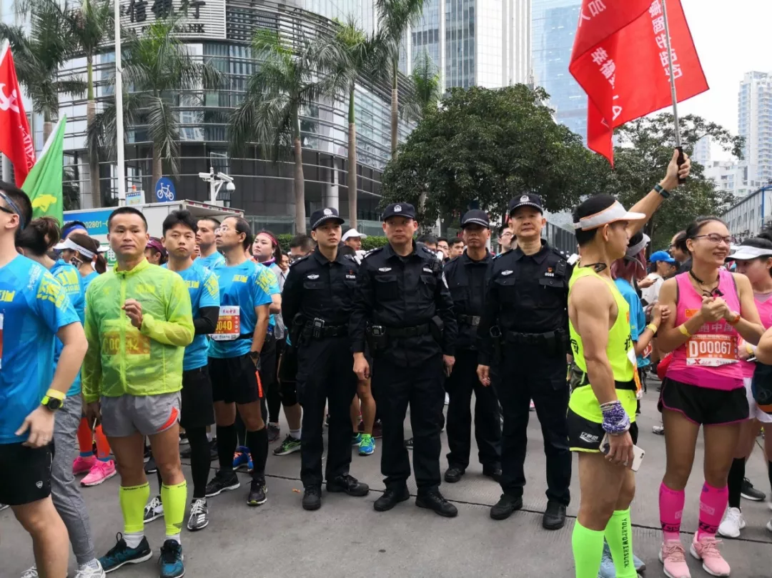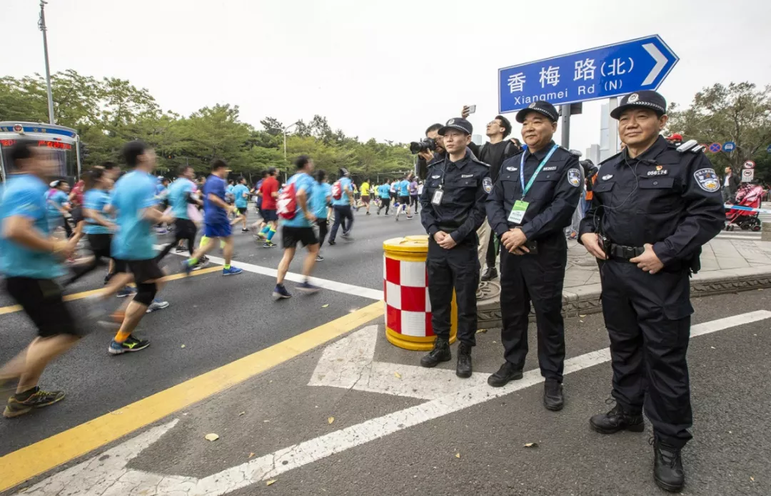 為全力做好此次馬拉松安保工作,福田警方提前謀劃、科學(xué)部署,承擔(dān)全程、半程馬拉松起點(diǎn)及6.2公里賽道的安全保衛(wèi),共出動(dòng)警力1972人,啟用20套4G現(xiàn)場(chǎng)圖傳 “千里眼”,20套視頻識(shí)別探頭“守點(diǎn)”;警力實(shí)時(shí)定位系統(tǒng)、118個(gè)高低空視頻預(yù)案“守線”;71套現(xiàn)場(chǎng)視頻執(zhí)法記錄儀。從凌晨4點(diǎn)到下午2點(diǎn),用長(zhǎng)達(dá)10個(gè)小時(shí)的安?!榜R拉松”為賽事的順利開(kāi)展保駕護(hù)航。