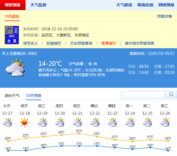 深圳新聞網(wǎng)12月17日訊(記者 劉婷) 受冷空氣影響,近來深圳氣溫下降,本周前期冷空氣持續(xù)影響,17日~18日深圳晴天間多云,早晚清涼,白天溫暖,空氣干燥。其中17日北風(fēng)較大,沿海和高地最大陣風(fēng)6級(jí)~7級(jí),氣溫14℃~20℃。