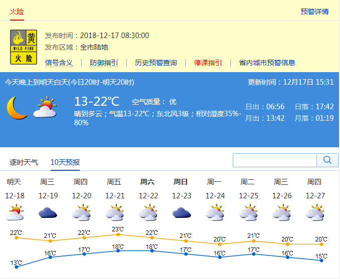 市氣象局發(fā)布未來(lái)十天天氣預(yù)報(bào)(數(shù)據(jù)更新于12月17日15時(shí)31分)