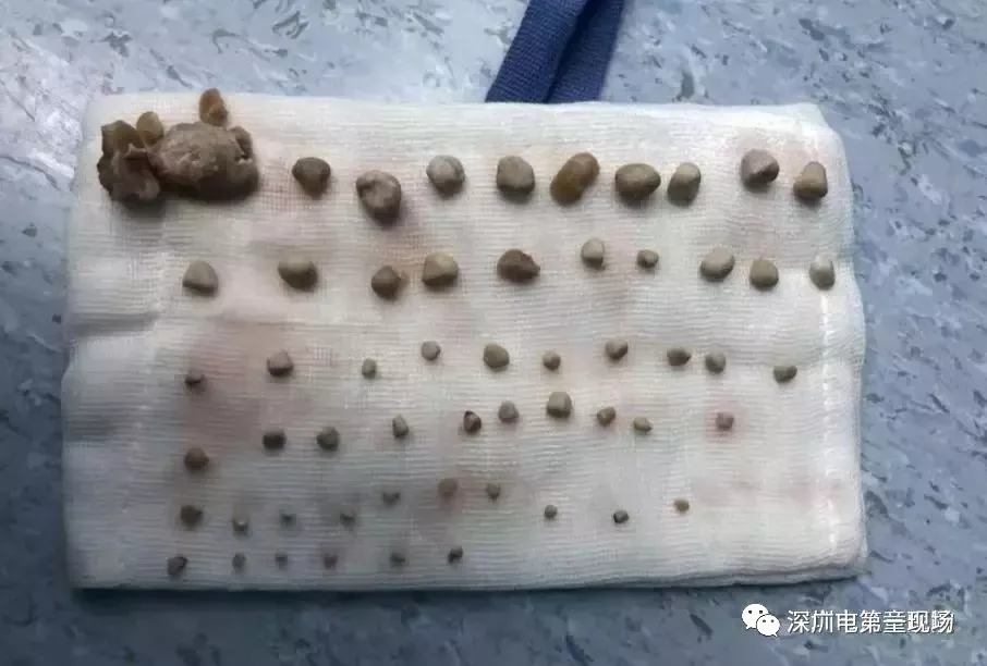 從小軒右腎取出的結(jié)石排了6排