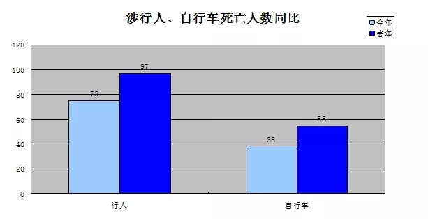 今年以來(lái),全市共發(fā)生涉行人事故死亡75人,同比減少22人,下降22.68%,占事故死亡總?cè)藬?shù)的27.08%。全市共發(fā)生涉自行車(chē)事故死亡38人,同比減少17人、下降30.91%,占事故死亡總?cè)藬?shù)的13.72%。我市慢行交通方式的道路安全水平進(jìn)一步提升。