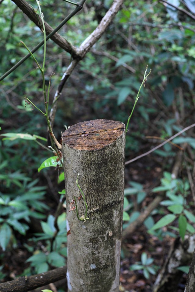 12月24日上午,記者再次來到首次發(fā)現(xiàn)盜采土沉香的地點(diǎn)。經(jīng)過近兩個(gè)小時(shí)的搜尋,在東北側(cè)山坡和溪谷中,又接連發(fā)現(xiàn)了6棵被盜伐的疑似野生土沉香。記者隨即將情況向仙湖植物園管理處副主任、植物專家張壽洲博士通報(bào)了情況,張博士告訴記者,管理處會(huì)盡快勘查現(xiàn)場(chǎng),對(duì)被破壞的土沉香進(jìn)行處理。"通常情況下,被鋸斷的土沉香不會(huì)死亡,我們會(huì)根據(jù)實(shí)際情況對(duì)受損的植株采取相應(yīng)的保護(hù)措施。另外,我們會(huì)用水泥、油漆對(duì)土沉香被盜采盜伐的斷面進(jìn)行封閉處理,讓不法分子盜采不到香料。"張博士說。