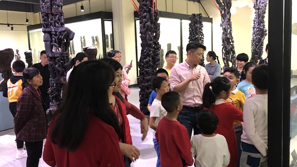 也許是被熱情的笑容和鼓舞所感染,天真活潑的小朋友們一到現(xiàn)場便與非洲大哥哥大姐姐們迅速的打成一片,毫無距離感。在非洲哥哥姐姐們的鼓聲引領下,同學們首先來到非洲文化博物館,由于大家都是第一次接觸非洲藝術品,哇哇哇的贊嘆聲此起彼伏,博物館工作人員瞬間被大家緊緊包圍,對各種藝術品提出了無數(shù)個五花八門的問題,真正成了“十萬個為什么”“案發(fā)現(xiàn)場”?!榜R賽人為什么住牛糞房子???”“木頭為什么是黑色的啊”“坐了酋長椅是不是就可以做酋長了?”……由于同學們第一次這么近距離接觸非洲文化,實在是太好奇太熱情,與各種藝術品親密接觸拍照、坐酋長椅體驗“做酋長”的感覺、甚至工作人員也“網(wǎng)開一面”讓大家騎在大象和獅子木雕上盡情玩耍,導致原本計劃半小時的參觀時間足足一個半小時才結(jié)束。
