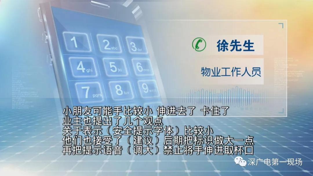 28日下午,果汁機(jī)企業(yè)的負(fù)責(zé)人到現(xiàn)場(chǎng)查看,并向受傷女童家長(zhǎng)解釋?zhuān)簷C(jī)器里的杯子是可以通過(guò)傳送裝置延伸出來(lái),因此無(wú)需將手伸進(jìn)去取物。