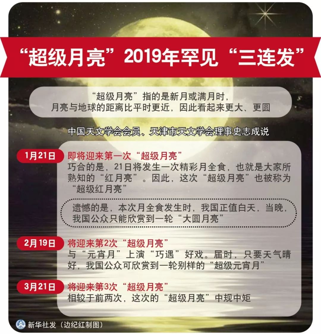 ④天文專家表示,“超級月亮”2019年會(huì)上演罕見“三連發(fā)”,時(shí)間分別是1月21日、2月19日和3月21日。在這3次當(dāng)中,第2次觀賞效果最佳。