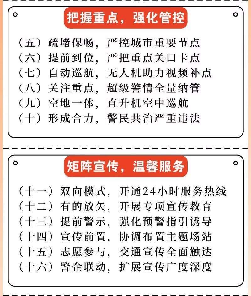 一是研判風險,排查隱患;二是嚴把關(guān)口,路面查控;三是廣泛發(fā)動,全民參與。
