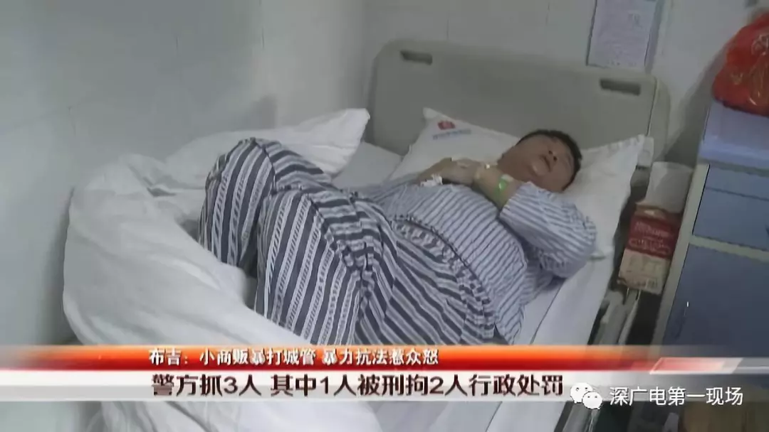 被打的城管隊員名叫徐濤,今年34歲,3個月前剛剛開始城管市容巡查員工作。目前,該隊員已經(jīng)住院就醫(yī),經(jīng)鑒定,該隊員腰肋骨折,需要臥床修養(yǎng)三個月以上才能康復(fù)。