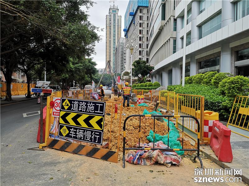 福田農(nóng)林路道路工程施工牌顯示,正在進(jìn)行電纜溝擴(kuò)建工程