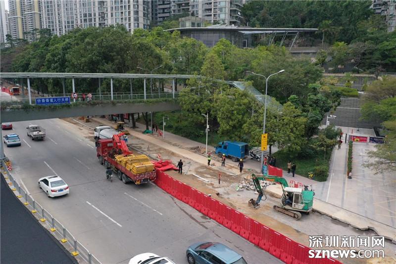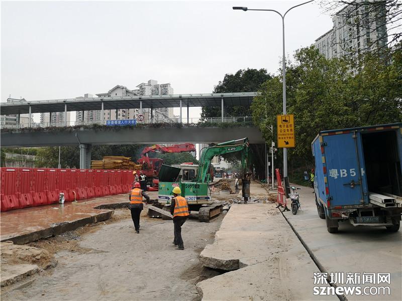 福田區(qū)僑鄉(xiāng)路道路施工現(xiàn)場航拍