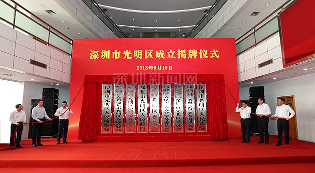 2018年9月19日,光明區(qū)正式揭牌成立。這是繼2016年10月,國(guó)務(wù)院批復(fù)同意設(shè)立龍華、坪山區(qū)之后,深圳又一個(gè)獲批的行政區(qū),也是深圳第九個(gè)行政區(qū)。