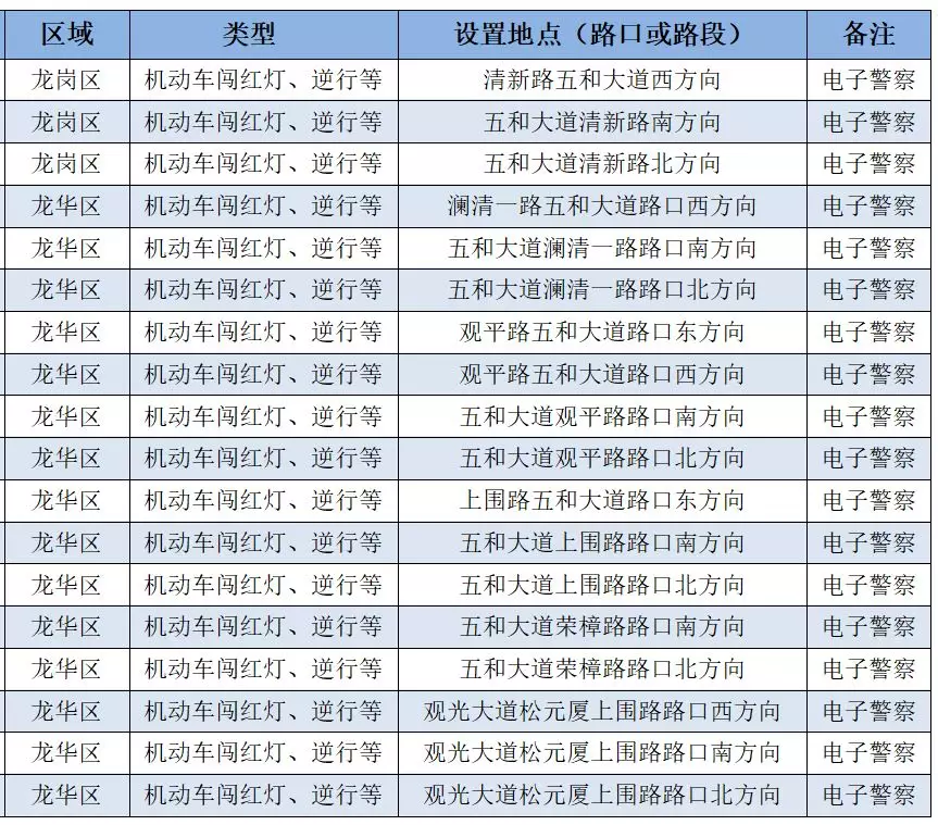 主要分布在交通環(huán)境復(fù)雜等車流、人流密集的信號路口及路段。龍崗區(qū)3套,位于五和大道清新路口。南山區(qū)15套,位于五和大道瀾清一路、觀平路、上圍路、榮樟路等路口以及觀瀾大道松元廈上圍路口。