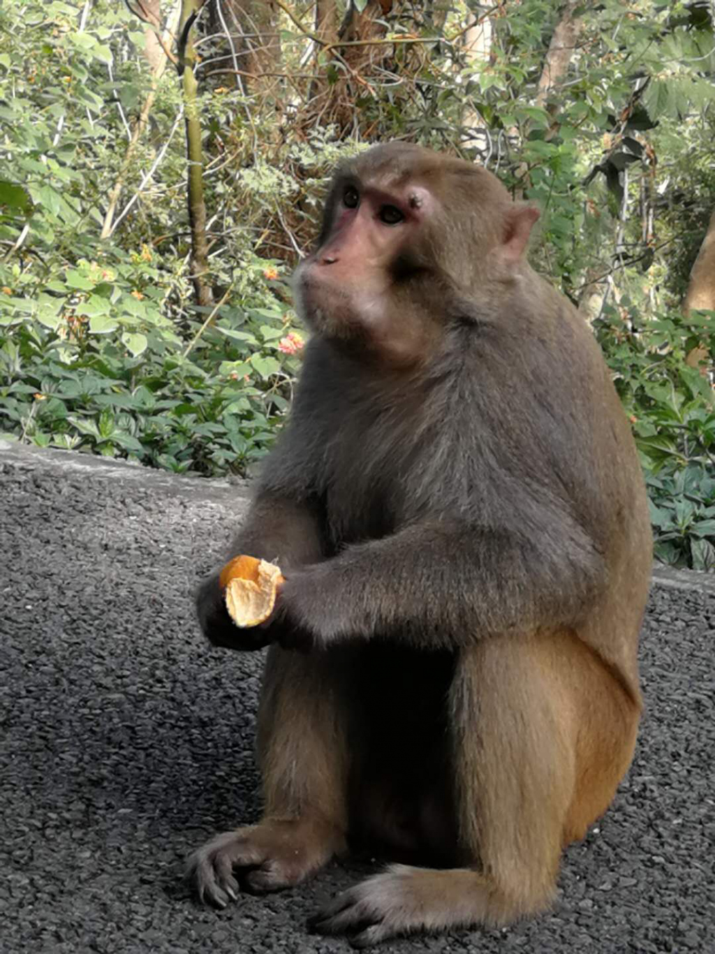 原標(biāo)題:梅林山公園驚現(xiàn)一只胖猴子愛(ài)吃蘋果香蕉和糖果