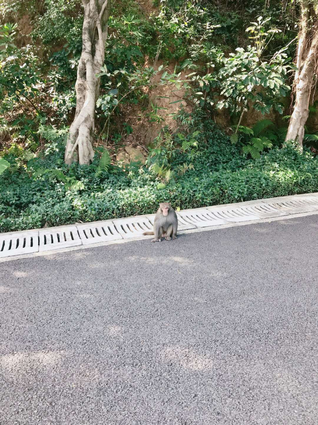 "這個(gè)東西很聰明,愛吃蘋果、香蕉和糖果,估計(jì)有三四十斤重,很肥。"今天上午,記者前往梅林山公園探訪猴子的蹤影。從梅山苑二期的梅林山公園入口一上公園主干道,記者就發(fā)現(xiàn)保安員陳先生正在路邊值守,梅林山公園管理處發(fā)現(xiàn)猴子后,就安排了保安員巡查看護(hù)。陳先生告訴記者,20日早上7點(diǎn)多猴子就出現(xiàn)在路邊,當(dāng)時(shí)公園人少,沒有討到吃的就走了。上午10點(diǎn)多,乘著游玩的人多猴子又跑出來湊熱鬧,保安員發(fā)現(xiàn)后拿了香蕉、橘子和糖果給它,猴子也一點(diǎn)不客氣,從人手里接過來就吃。原本靜謐的公園隨著猴子的出現(xiàn)熱鬧起來,圍觀的市民也紛紛慷慨解囊。這只胖乎乎的猴子一點(diǎn)也不怕人,最近時(shí)距離人不到一米遠(yuǎn),大家也親切叫它"肥仔"。