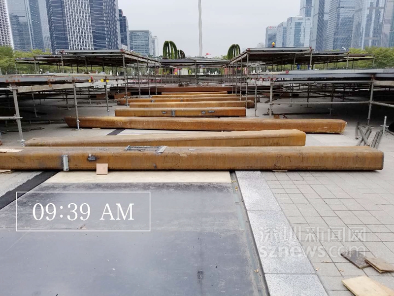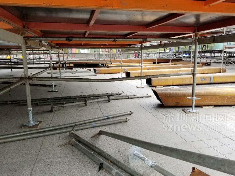 由于市民中心南廣場下為地下車庫,為了安全起見,舞臺以“遇河架橋”的思路進行搭建(王啟文供圖)