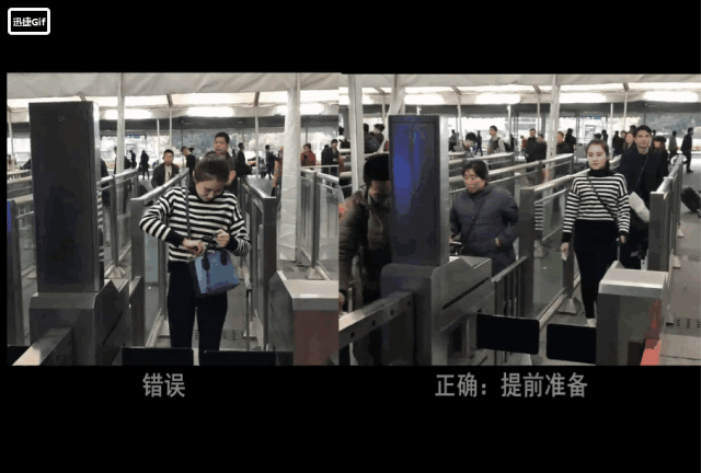 通過自助驗(yàn)證閘機(jī)或人工檢票進(jìn)站時(shí),應(yīng)提前準(zhǔn)備好證件、車票,避免耽誤個(gè)人進(jìn)站時(shí)間、其他旅客時(shí)間。