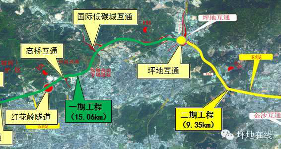 外環(huán)高速一期工程龍崗段起點(diǎn),位于深莞交界(順接項(xiàng)目的東莞段),往東分別經(jīng)龍崗、坪地街道終點(diǎn)與惠鹽高速相接。