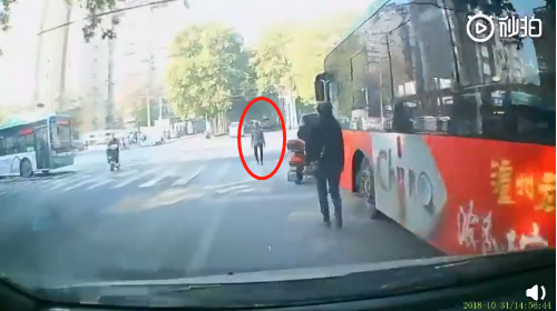 老太太走到小車正前方時(shí)卻突然停下腳步,緊接著緩緩臥倒在地。