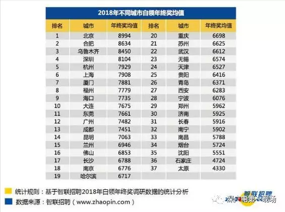 近日,智聯(lián)招聘公布了針對2萬名白領的“2018白領年終獎調(diào)查”結(jié)果,2018年全國平均年終獎為7100元,低于2017年的7278元。不過深圳排在了第四名,可喜可賀!