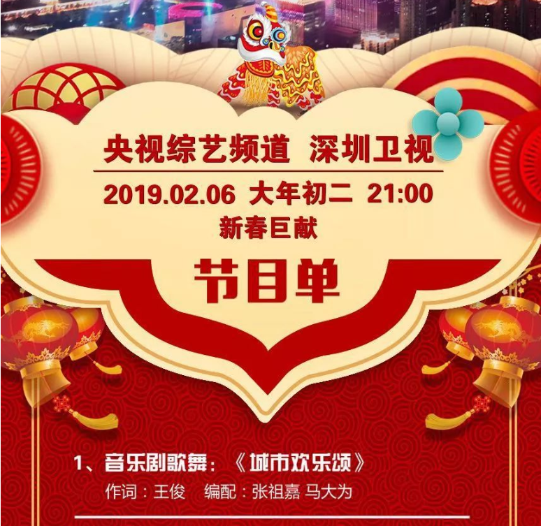 “擁抱春天——2019中央廣播電視總臺(tái)春節(jié)聯(lián)歡晚會(huì)深圳分會(huì)場節(jié)目展播暨深圳春節(jié)聯(lián)歡晚會(huì)”(以下簡稱“深圳春晚”)將于明晚21:00在央視綜藝頻道和深圳衛(wèi)視同步播出。