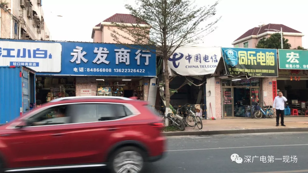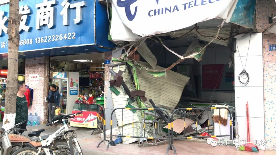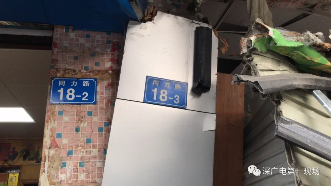 公交車撞上的位置涉及三個店面,其中一個店面受損比較嚴重,另外兩家店鋪只損壞了廣告牌。