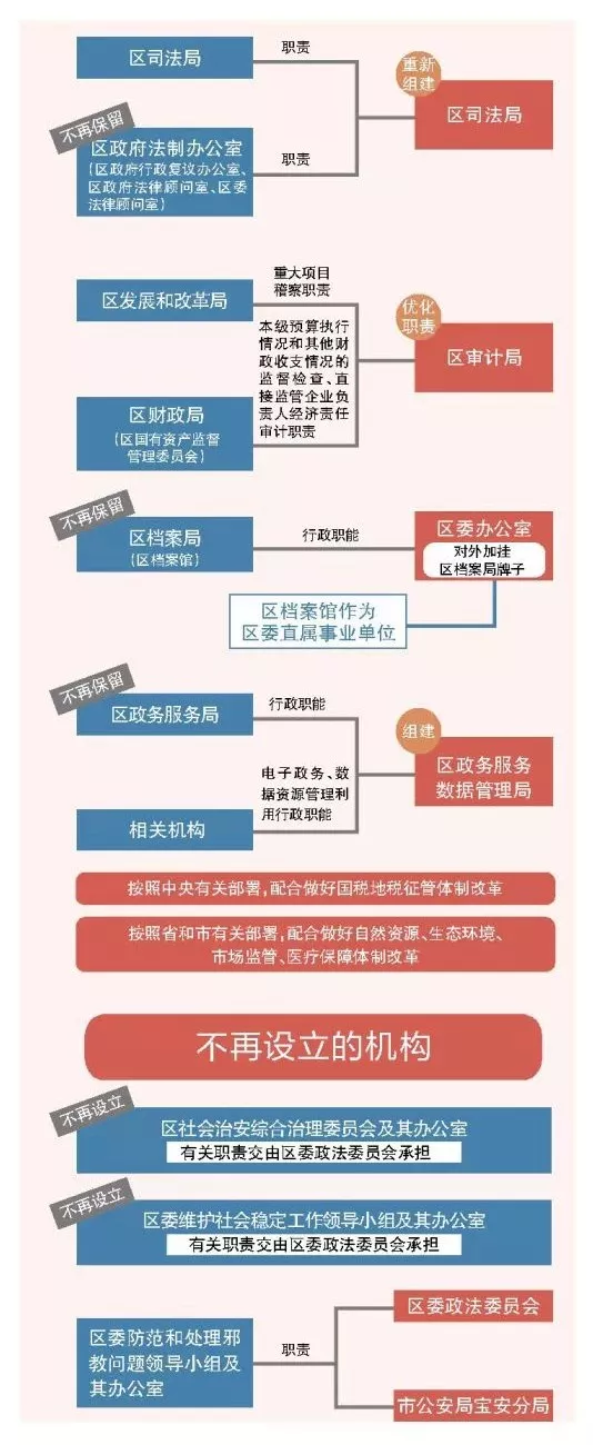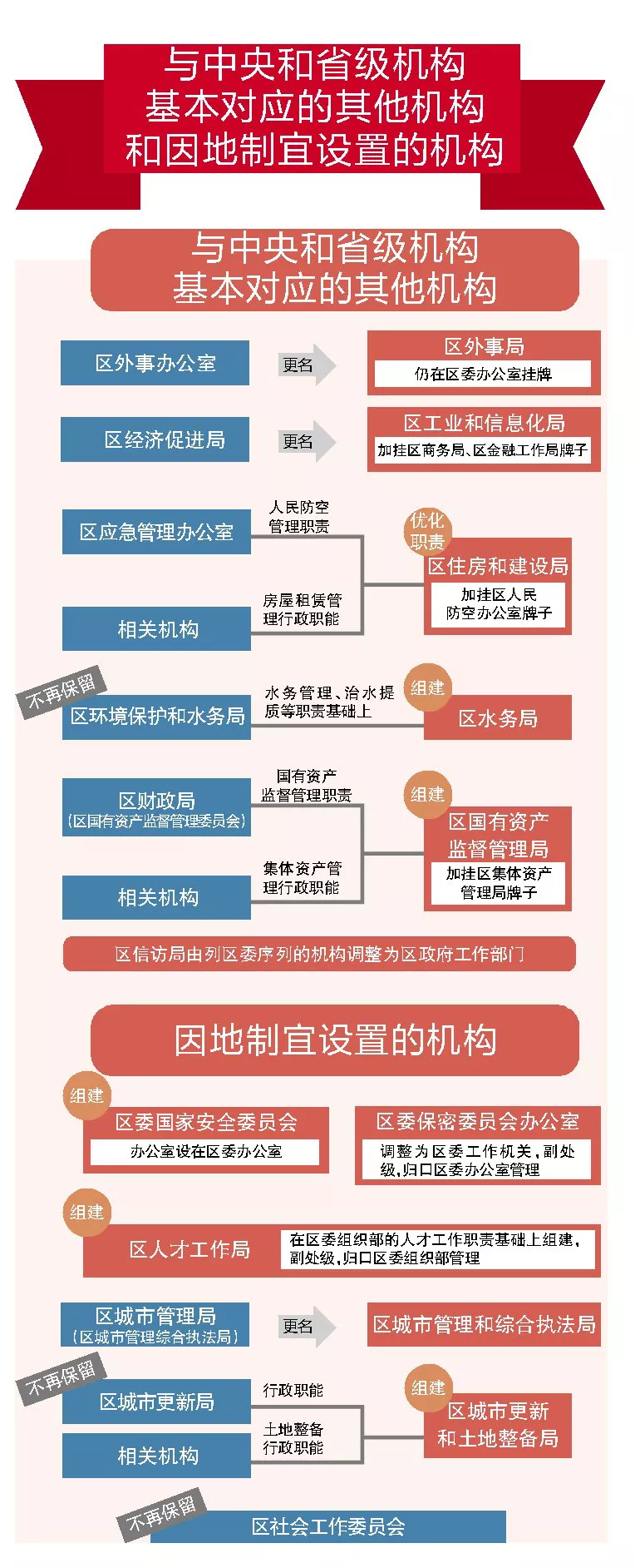 據(jù)了解,根據(jù)工作安排,區(qū)級機(jī)構(gòu)改革于3月底前基本完成。