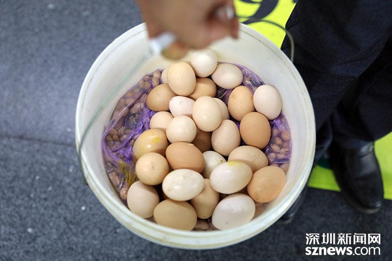 老家益陽(yáng)的徐爺爺此次返深,從家里帶了雞蛋還有家鄉(xiāng)的花生,滿(mǎn)滿(mǎn)裝了一大桶