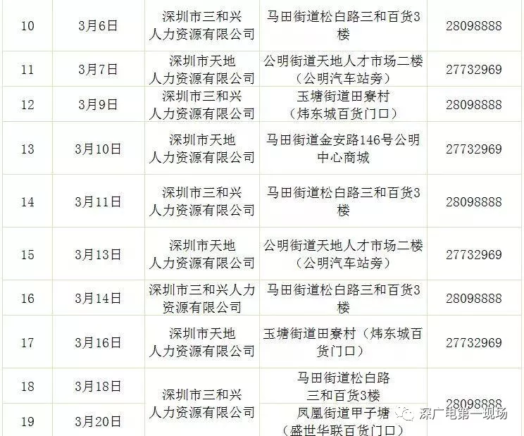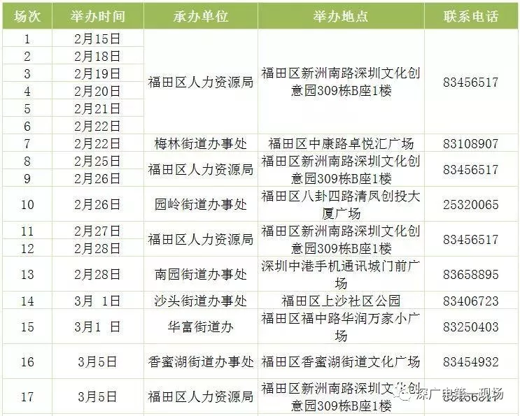 其中,深圳市公共就業(yè)服務(wù)中心26場,福田區(qū)27場,羅湖區(qū)40場,鹽田區(qū)14場,南山區(qū)9場,寶安區(qū)22場,龍崗區(qū)60場,龍華區(qū)56場,坪山區(qū)18場,光明區(qū)25場,大鵬新區(qū)9場。