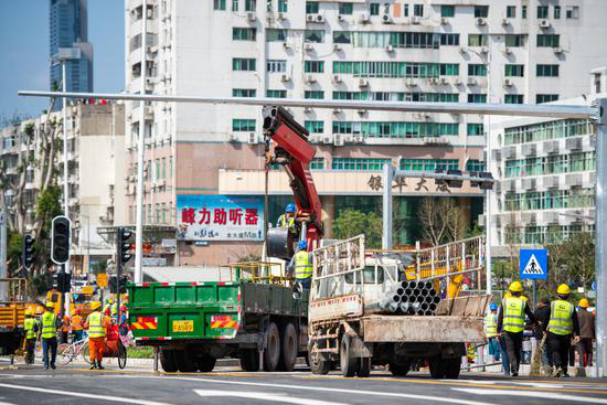 工人們奮戰(zhàn)在一線(xiàn)。
