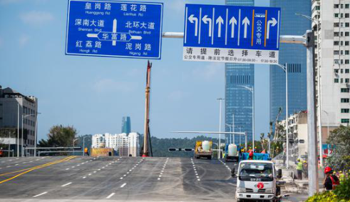 1.黃木崗立交橋拆除后,地面恢復(fù)成平交燈控十字路口,筍崗西路、華富路、泥崗西路實(shí)現(xiàn)雙向六車道通行,華強(qiáng)北路繼續(xù)中斷。