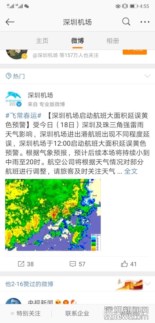 深圳機(jī)場(chǎng)微博發(fā)布航班延誤提醒