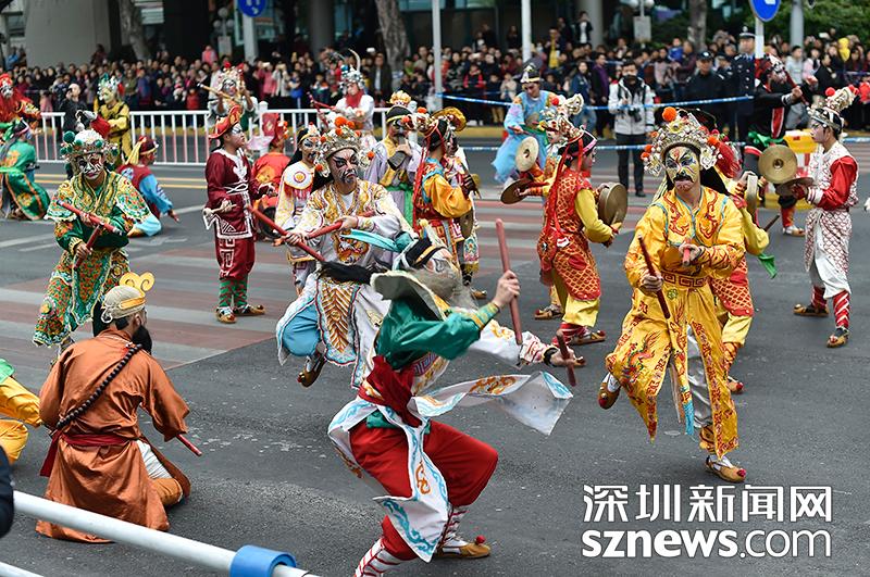 深圳新聞網(wǎng)2019年2月18日訊(記者 楊浩翰)有人說(shuō),元宵過(guò)完才是新年。明天就是元宵節(jié)了,今年廣東各地又有什么慶?;顒?dòng)呢?2月17日,主題為“春天交響”的文藝巡游活動(dòng)在汕頭舉行,活動(dòng)中各種民俗表演逐一登場(chǎng),為元宵節(jié)的來(lái)臨增添喜悅氣氛。
