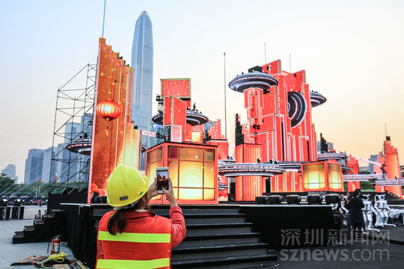 搭舞臺的工作落在了深圳市住建局的肩上。從接到任務到1月19日正式彩排錄制,深圳市住建局聯(lián)合深圳市建筑設計研究總院有限公司以及中建鋼構有限公司深圳分公司配合,用18天完美呈現(xiàn)了什么是新時代的“深圳速度”和“深圳質量”。