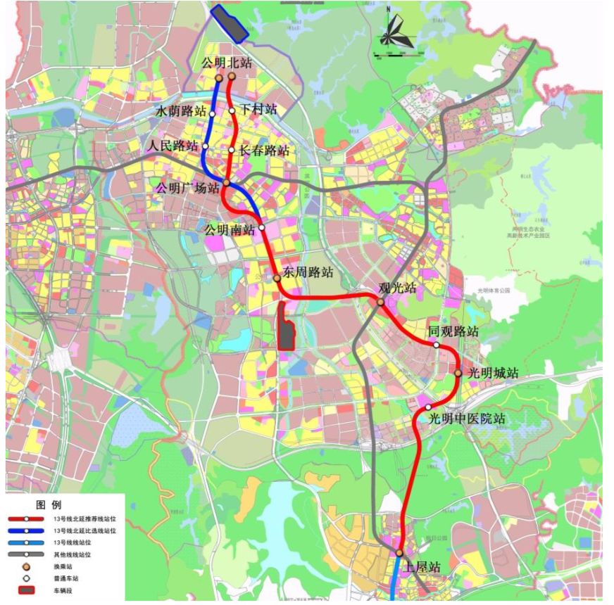 13號線北延線連接光明鳳凰城、公明中心等地區(qū),并通過已建成運(yùn)營的13號線連接至南山后海,是聯(lián)系光明新區(qū)與南山中心的市域快線。