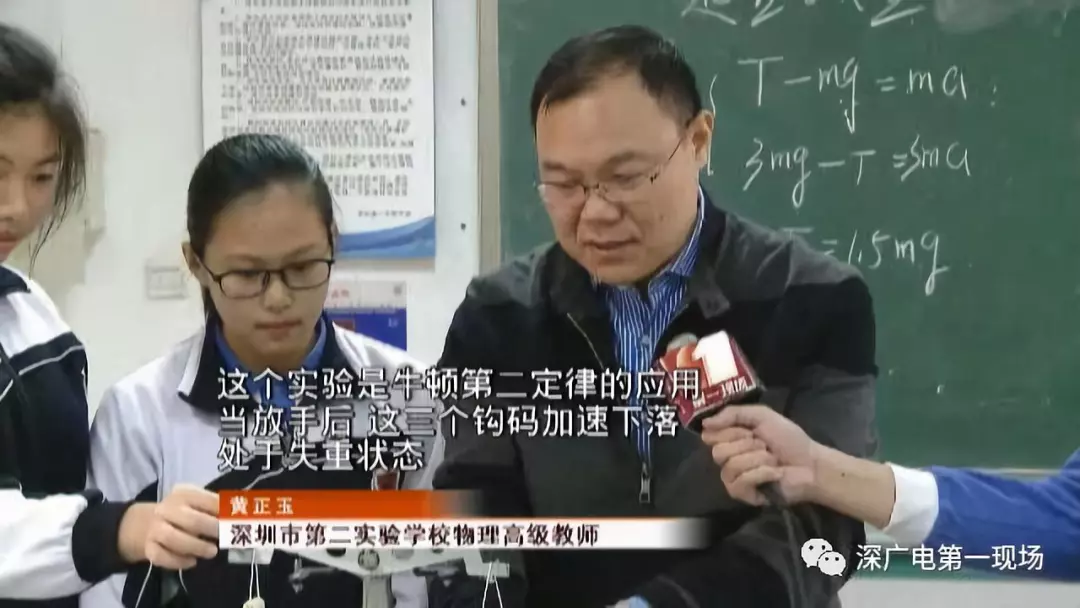 視頻中的主角,是深圳市第二實(shí)驗(yàn)學(xué)校的黃正玉、鄭景華、馮雅琪三名物理老師,這個(gè)視頻是一段物理教學(xué)實(shí)驗(yàn)短視頻,名為《3+1=3?》。