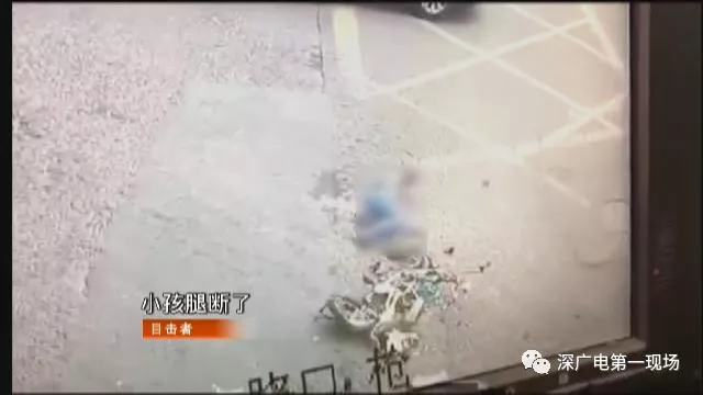 監(jiān)控畫(huà)面右下角能看到幾乎被碾碎的電動(dòng)車和摔在地上的學(xué)生,學(xué)生躺在地上掙扎,似乎左腿已不能動(dòng)彈。