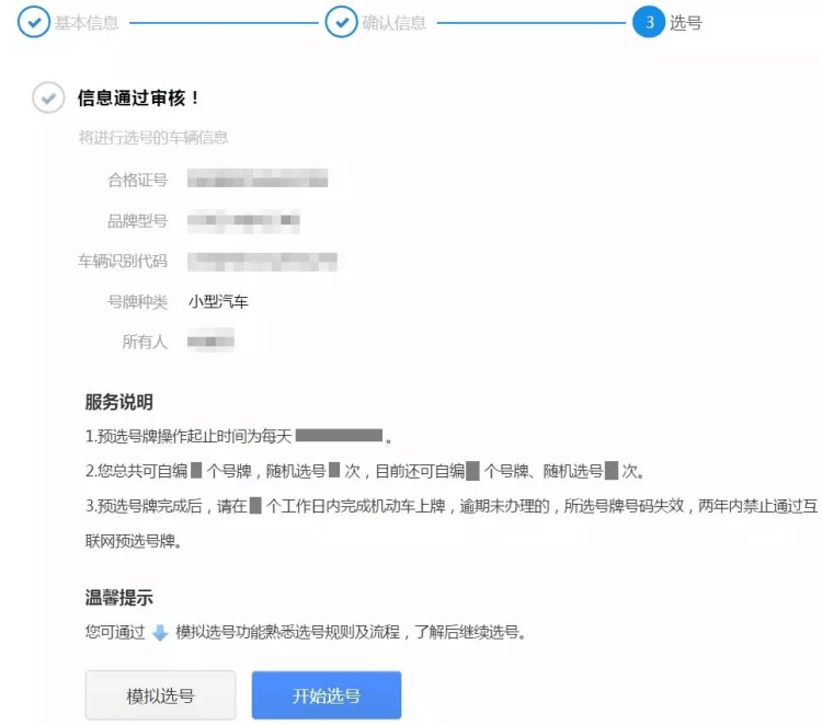 準確錄入本人 /本單位需預選號碼的車輛信息,確認信息準確無誤后,點擊提交。