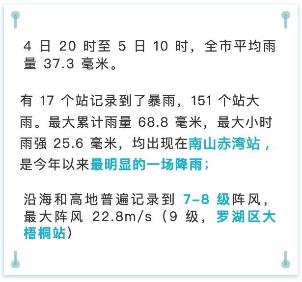 受加強的偏南氣流影響,昨天夜間深圳普降大雨局部暴雨。