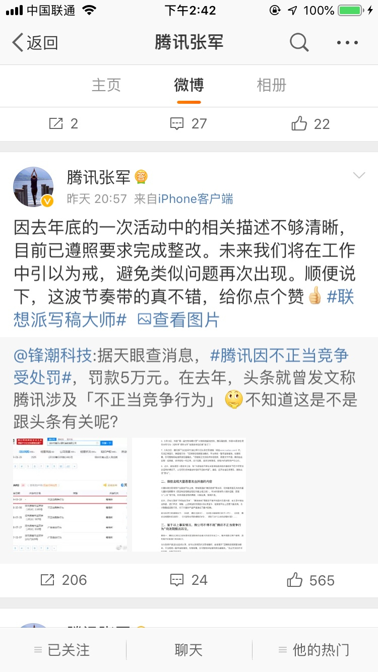 3月20日,微博認(rèn)證為騰訊公司公關(guān)總監(jiān)張軍在微博中解釋:因去年年底的一次活動(dòng)中的相關(guān)描述不夠清晰,目前已遵照要求完成整改。未來我們將在工作中引以為戒,避免類似問題再次出現(xiàn)。