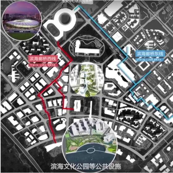 寶安中心區(qū)與前海共同作為深圳西部城市中心和城市客廳的組成部分,3月1日,位于寶安中心區(qū)的濱海廊橋開(kāi)工,該濱海廊橋兼顧市民休閑、運(yùn)動(dòng)、景觀,實(shí)現(xiàn)地下、地面、地上三層一體,立體連通寶安體育場(chǎng)、核心商務(wù)區(qū),灣區(qū)之聲音樂(lè)廳、濱海文化公園等重大基礎(chǔ)設(shè)施,增強(qiáng)中心區(qū)通達(dá)性,強(qiáng)化與濱海地帶的聯(lián)系。