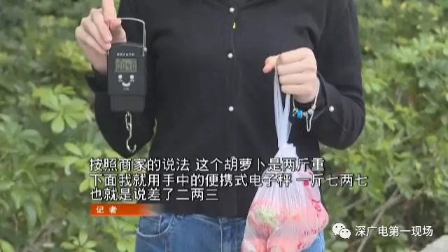 在記者購買了胡蘿卜的攤位,執(zhí)法人員經(jīng)過初步檢測,暫未發(fā)現(xiàn)商家使用的秤存在問題,面對記者的質(zhì)疑,商家聲稱,自己剛才是因為不想找零錢,才向記者多報了二兩。