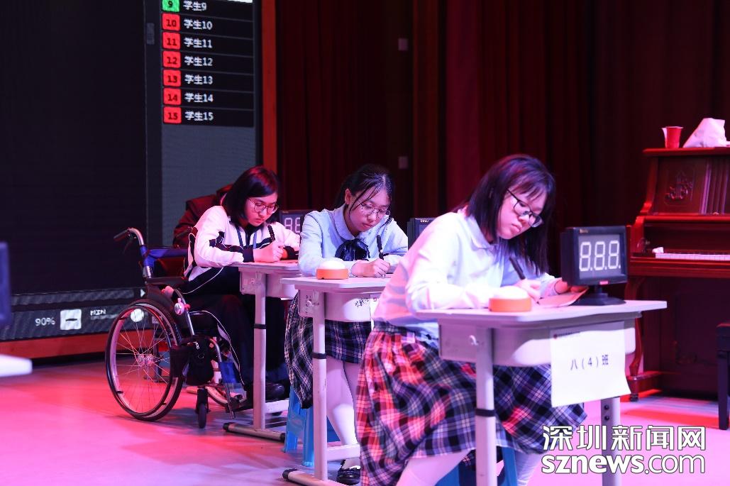 校決選現(xiàn)場(chǎng),初中的同學(xué)們通過猜詞、聽寫、國(guó)學(xué)知識(shí)搶答三個(gè)環(huán)節(jié),帶來了精彩的視聽盛宴。他們用掌聲相互鼓勵(lì),用眼神激勵(lì)彼此,整個(gè)活動(dòng)下來,溫暖又特別。有學(xué)生告訴記者,他們非常期待深圳市復(fù)選,希望借復(fù)選的環(huán)節(jié)——國(guó)學(xué)知識(shí)測(cè)評(píng)、優(yōu)秀圖書推薦演講和國(guó)學(xué)才藝秀磨練自己,提升自己。