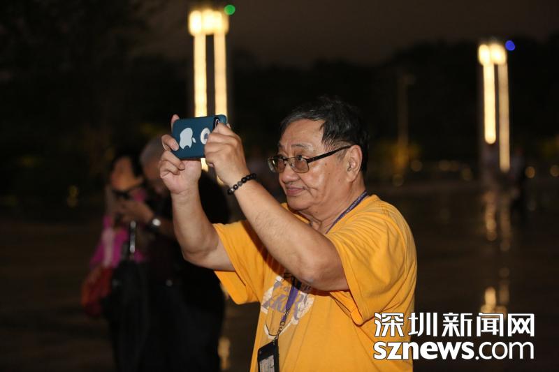 市民們紛紛拿出手機(jī)拍攝燈光秀演出。
