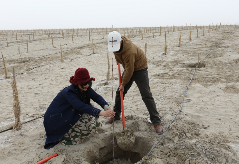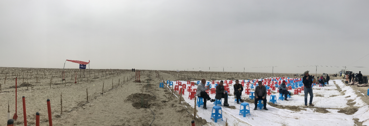 共120余人在麥蓋提縣百萬畝防風(fēng)固沙林基地