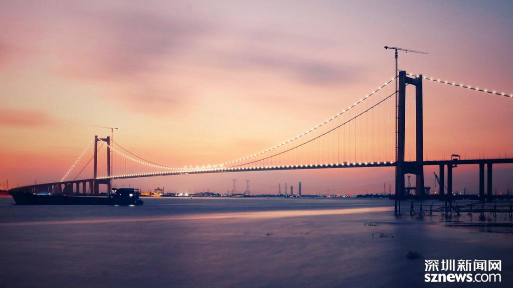 虎門二橋夜間橋面亮燈后景象