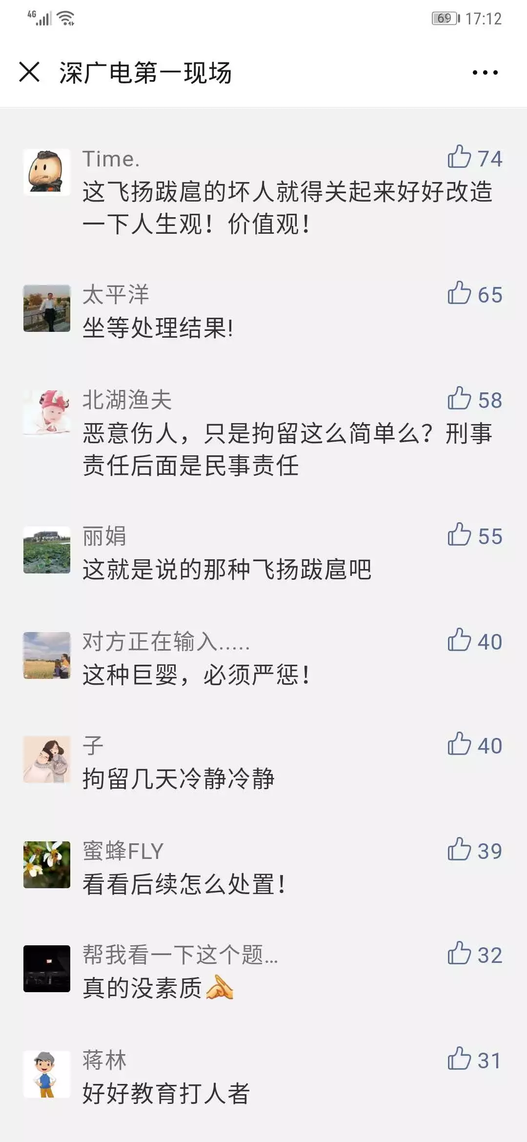 而在當天節(jié)目播出之后,不少觀眾在我們第一現(xiàn)場微信公眾號后臺留言,對打人者的行為進行譴責。
